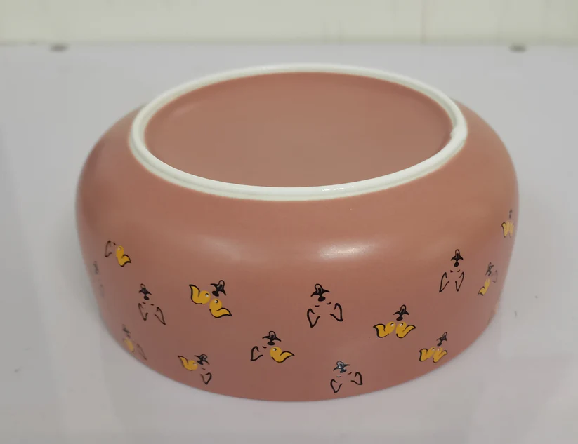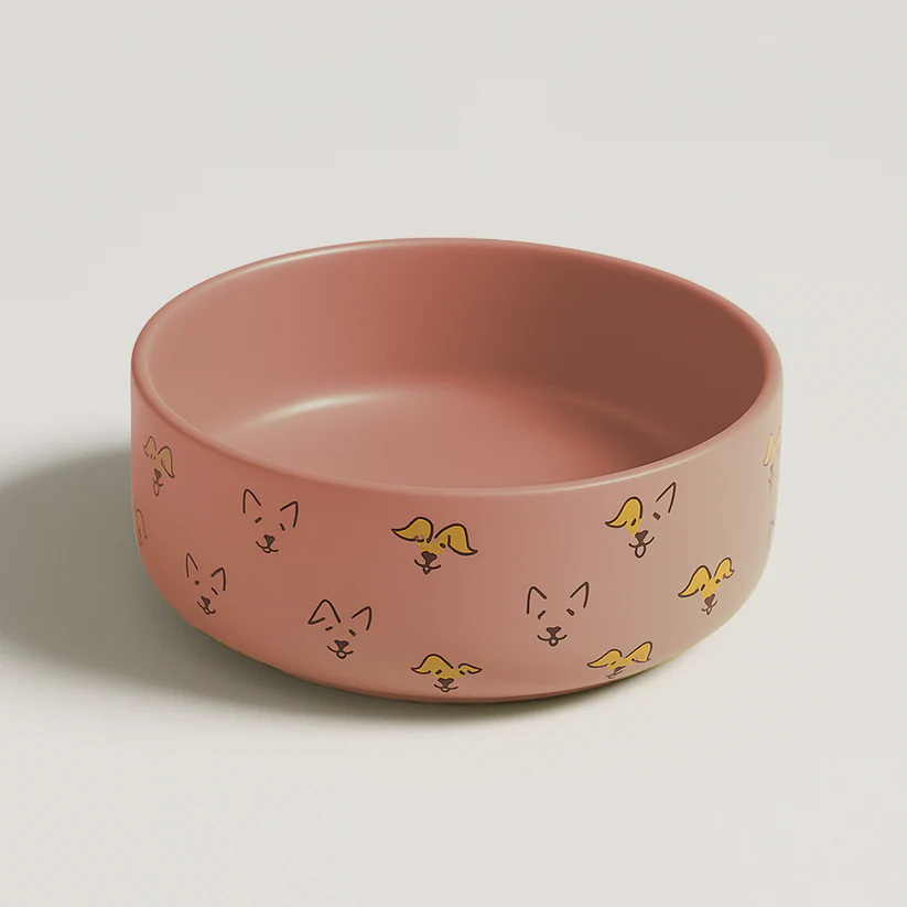 A 5-inch stoneware bowl in a chic pink finish, designed to offer a blend of stylish aesthetics and practical pet-friendly features. This set meets the demand for pet supplies that support a modern home aesthetic while ensuring convenience and safety for ceramic dog food container options.